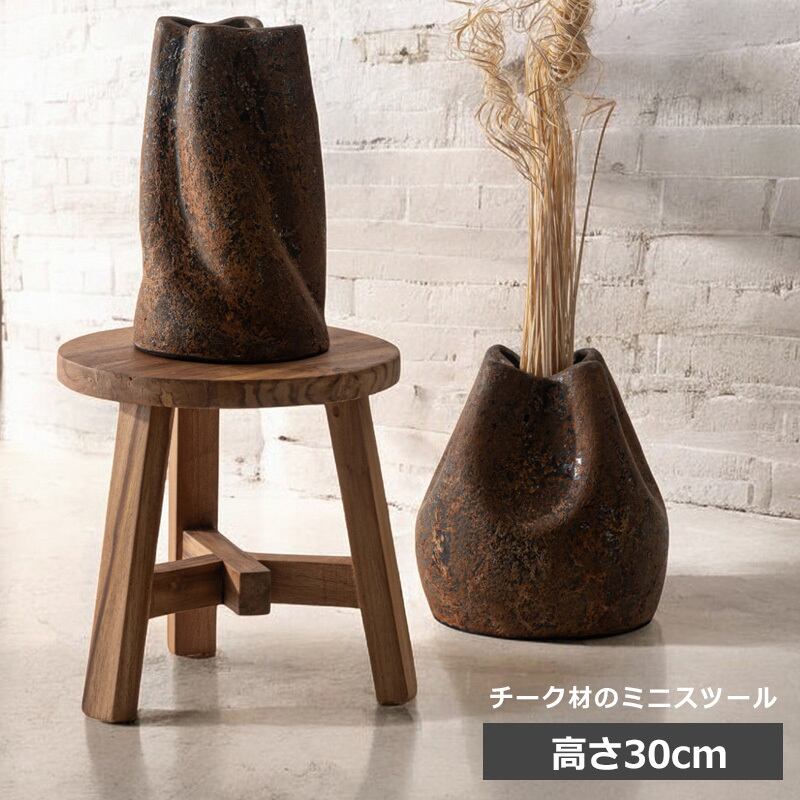 ミニスツール チーク材 無垢材 玄関スツール 丸椅子 ハンドメイド 木 ディプレイ台 花台 フラワースタンド アンティーク ヴィンテージ 手作り ロー 低め 子供
