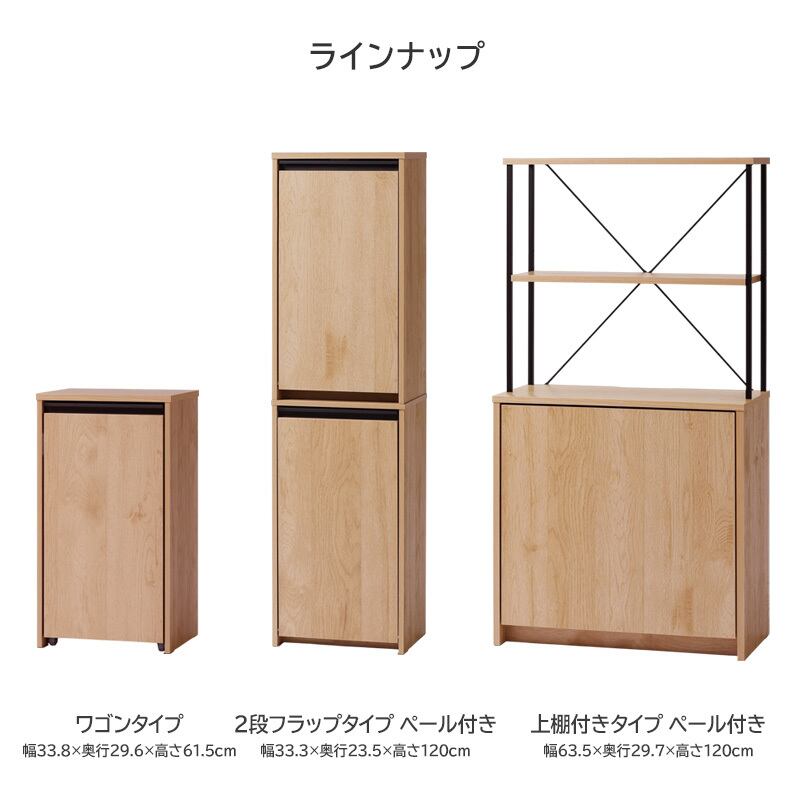 ゴミ箱付きラック ごみ箱ペール付き シェルフ 薄型 15L×2 分別 木製 上棚付き キッチンボード 北欧 ダストボックス ナチュラル フラップ扉