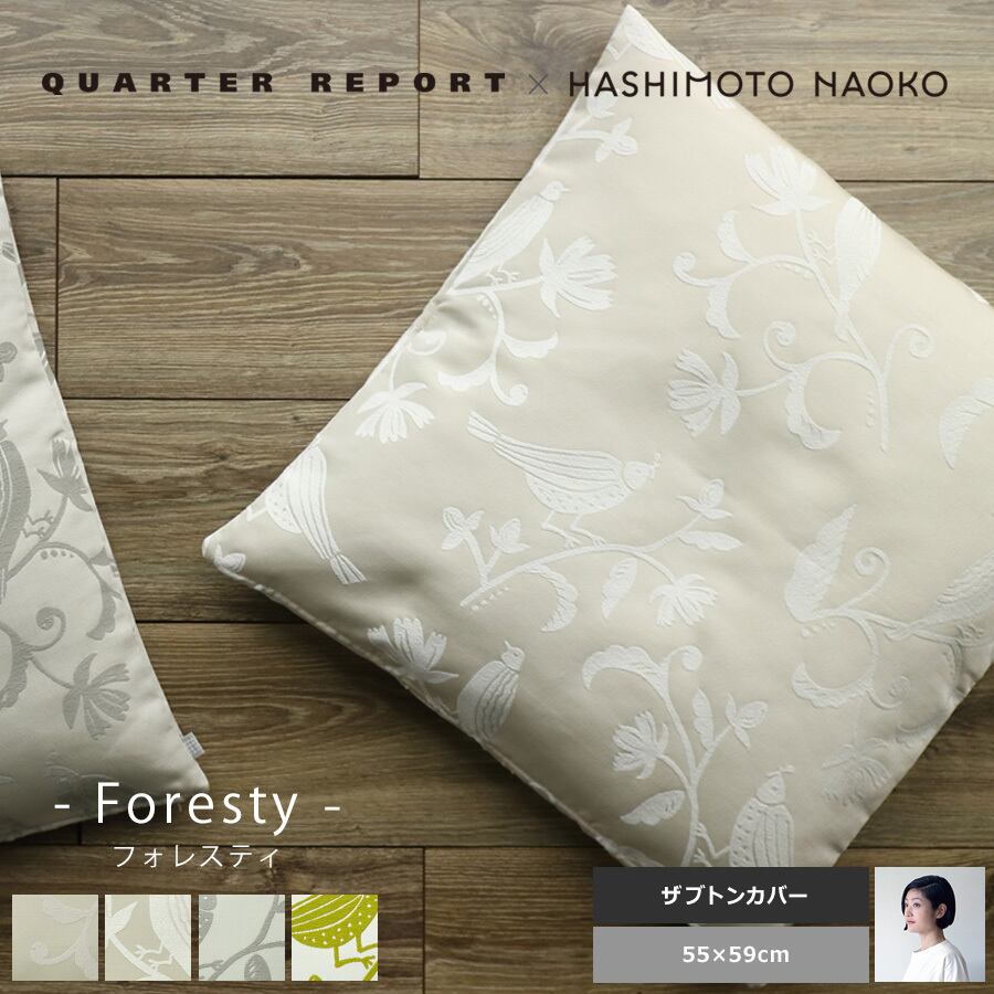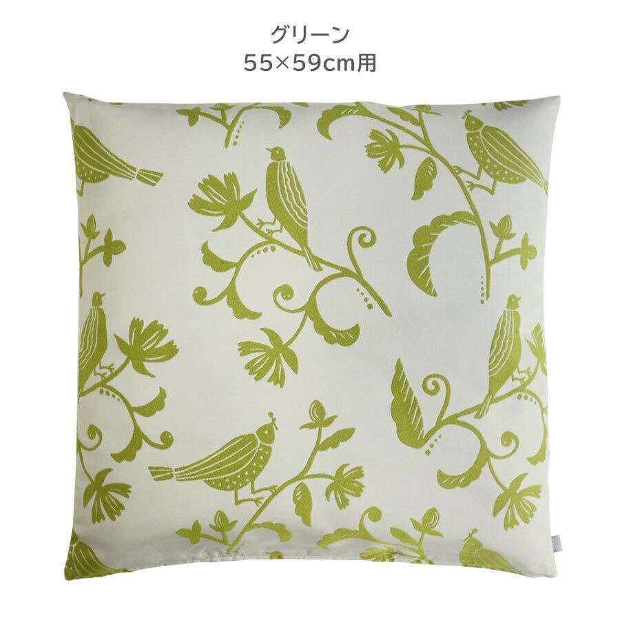 座布団カバー 55×59 おしゃれ 北欧 植物 鳥 自然 角型 四角 無地 ジャガード フォレスティ クォーターリポート 日本製 アイボリー ベージュ グレー グリーン ギフト 贈り物 プレゼント お返し お祝い