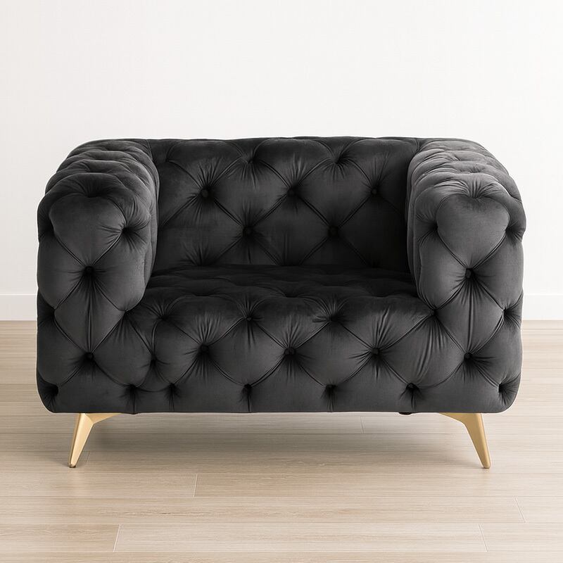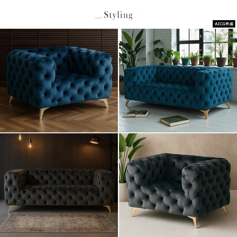 光沢感と上質の触り心地のベルベットのチェスターフィールド調のソファ