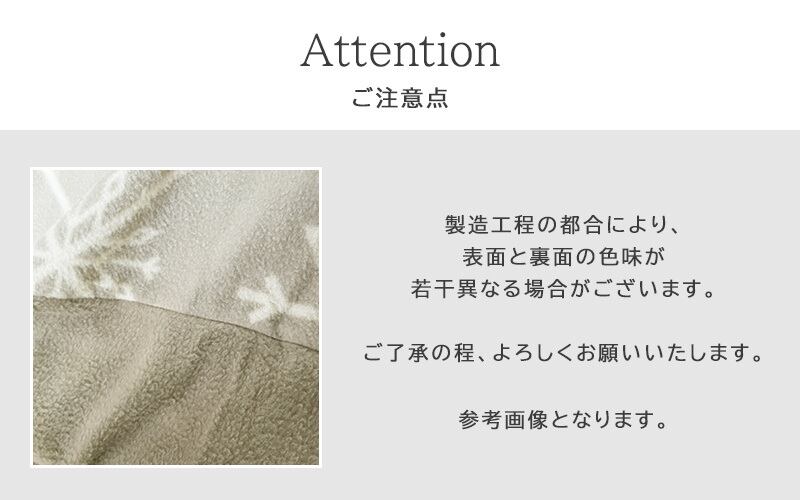掛け布団カバー製造の都合により、裏表で色が若干異なる場合がございます。