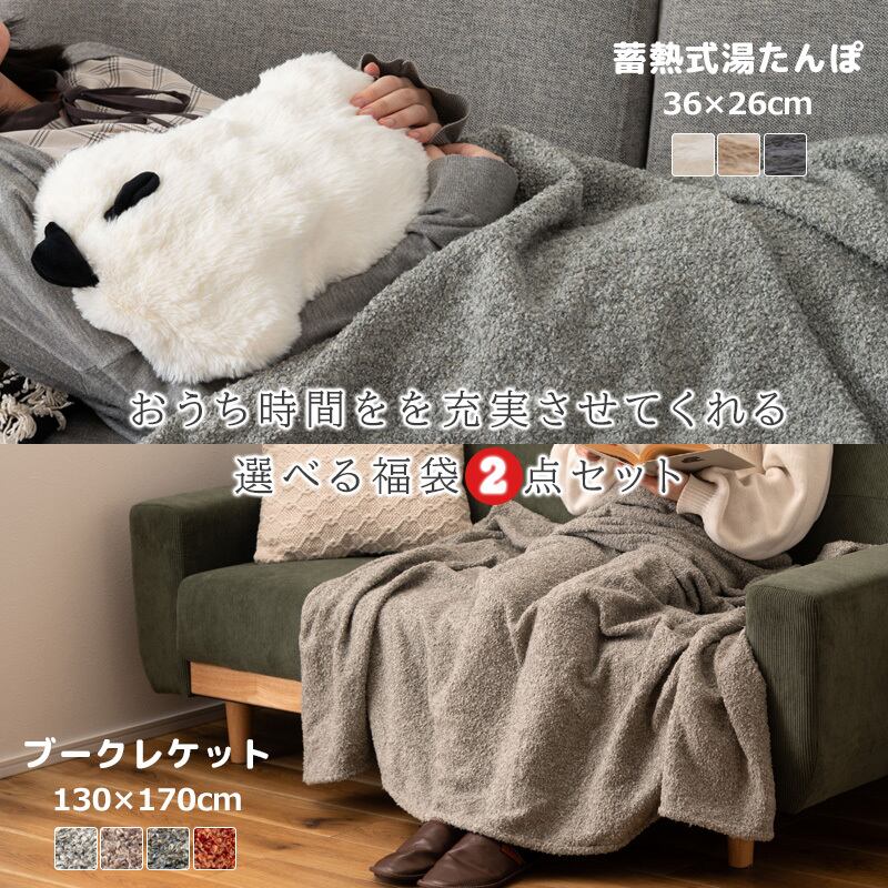 湯たんぽ 充電式 おしゃれ 羊 シープ ブランケット スローケット ひざ掛け ベッドカバー ブークレ くすみ 福袋 2026 北欧 韓国インテリア 雑貨 ハッピーバッグ
