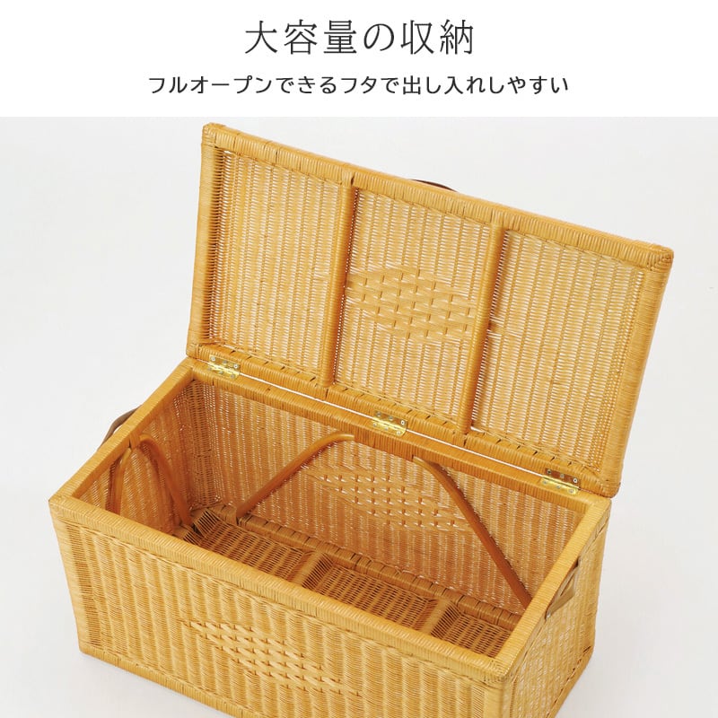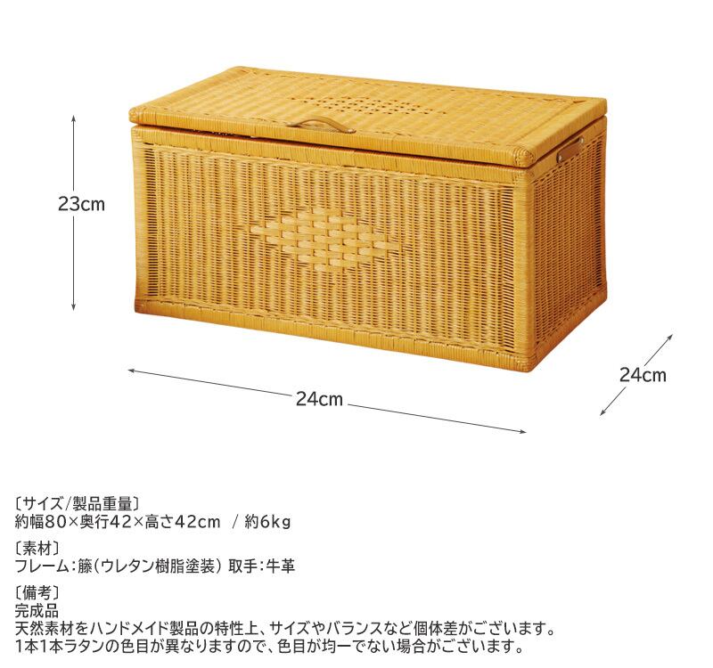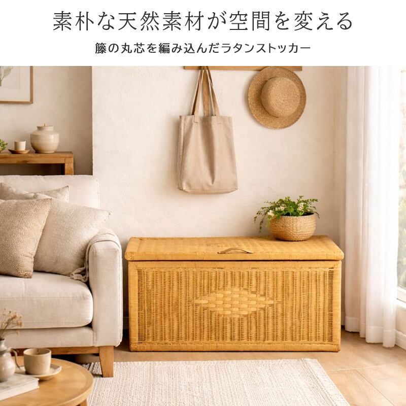 収納ボックス ストッカー 蓋付き かご ラタン 籐 大型 大容量 本革 軽量 幅80×奥行42×高さ42cm 北欧 韓国インテリア アジアン ボタニカル ジャパンディ 和室