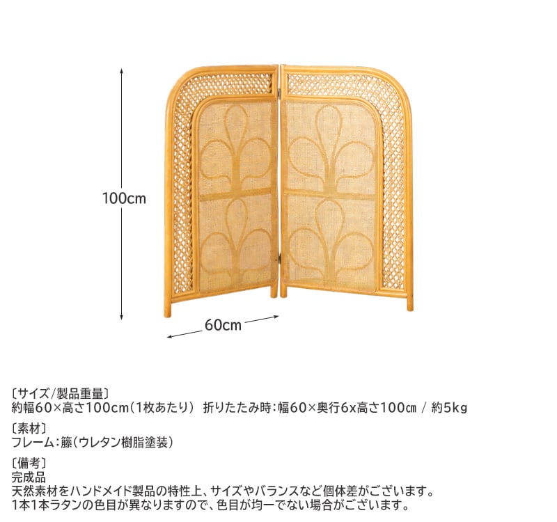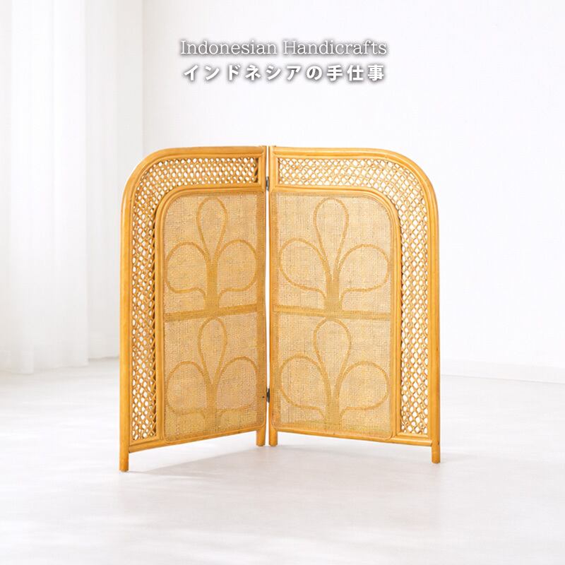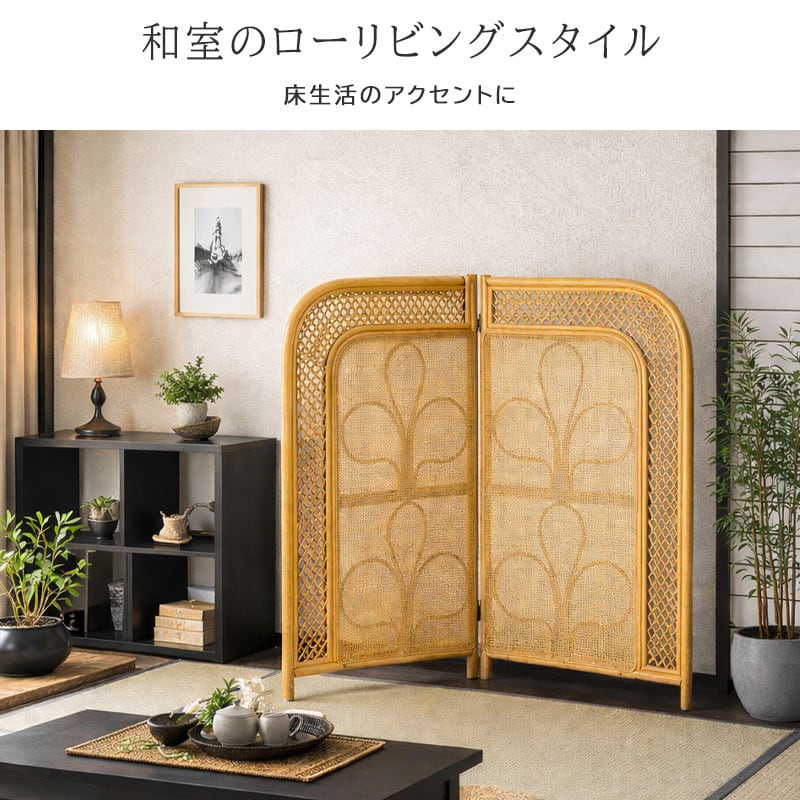 スクリーン パーティション 衝立 ラタン 籐 2連 ロー 高さ100cm 折りたたみ 間仕切り パーテーション 北欧 韓国インテリア アジアン ボタニカル ジャパンディ 和室