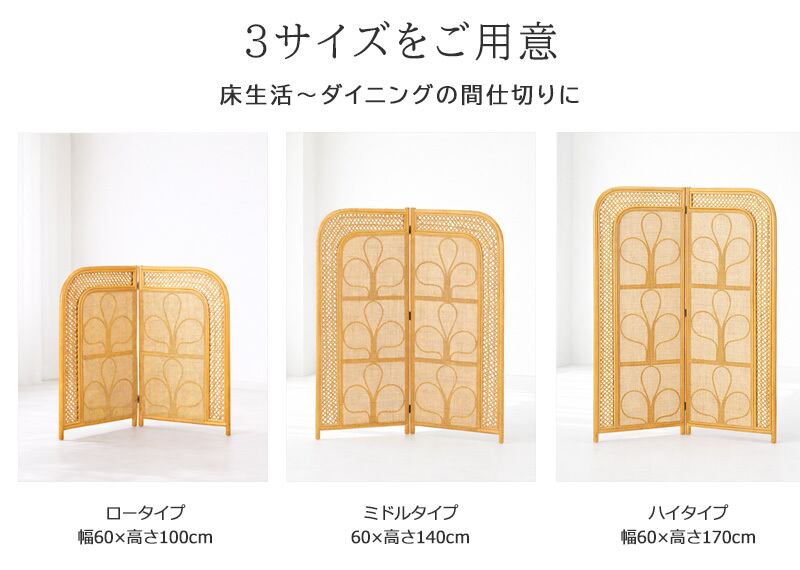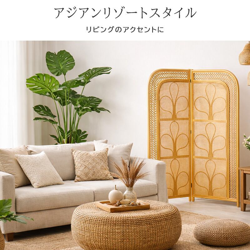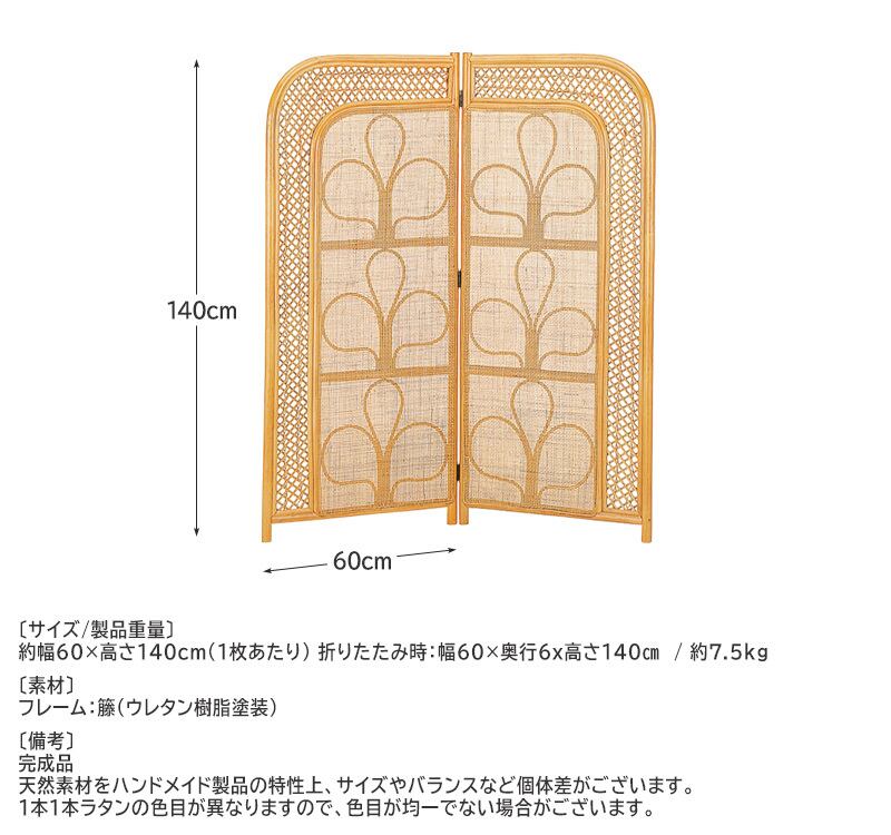 スクリーン パーティション 衝立 ラタン 籐 2連 ミドル 高さ140cm 折りたたみ 間仕切り パーテーション 北欧 韓国インテリア アジアン ボタニカル ジャパンディ 和室