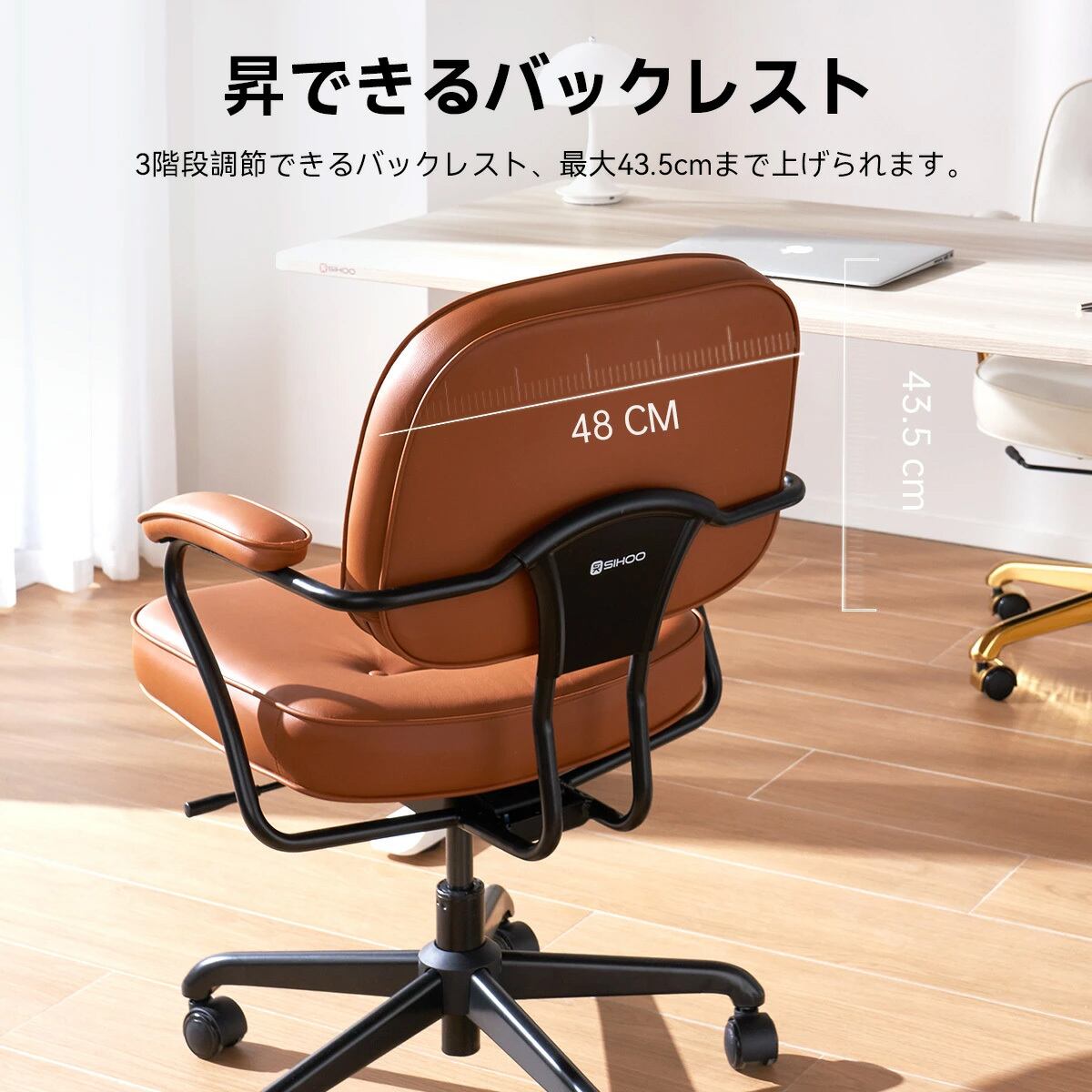 オフィスチェア デスクチェア 椅子 合成皮革 ロッキング アームレスト ヴィンテージ ビンテージ 人間工学 会議チェア ミーティングチェア ブラウン SIHOO L3D