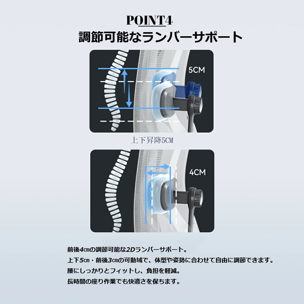 腰痛対策:上下・前後の調整可能なランバーサポート