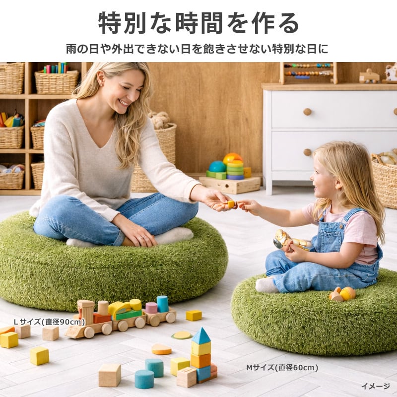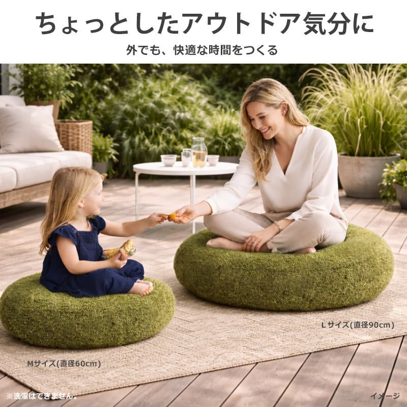 クッション 座布団 おしゃれ 北欧 アウトドアリビング 丸型 円形 ラウンド 厚い 厚手 90 座椅子 ごろ寝 椅子 フロアクッション もちもち 大きい 芝生 グリーン