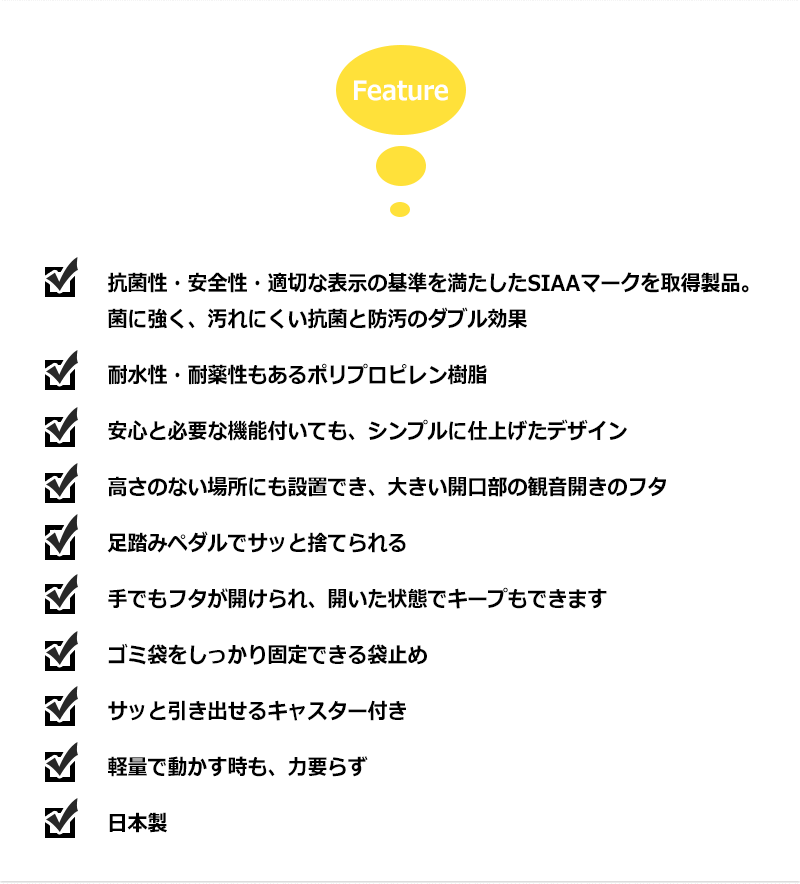 本体:ポリプロピレン(SIAA認証の抗菌仕様)