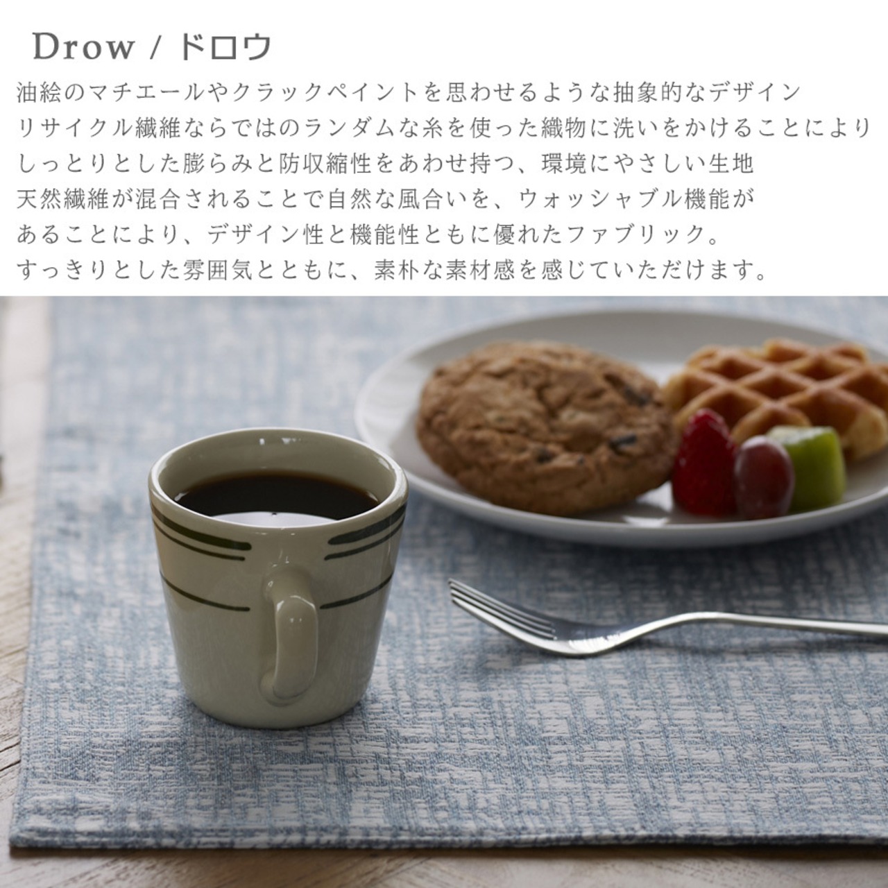 ランチョンマット ドロウ 布 北欧 おしゃれ 46×35 日本製 クォーターリポート ドロウ ナチュラル ベージュ グレー サックス グリーンー