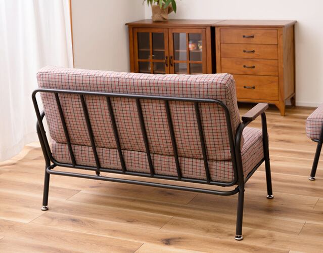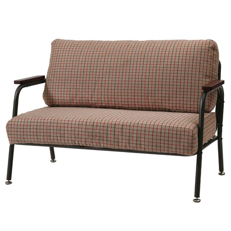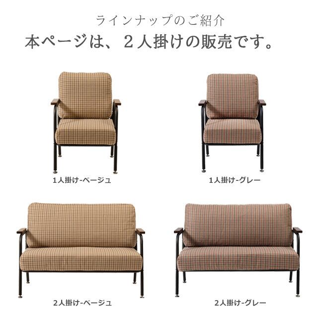 ソファー ソファ 2人掛け おしゃれ 二人掛け ポケットコイル レトロ ファブリック 布 チェック 昭和レトロ カントリー 肘掛け アイアン ベージュ グレー