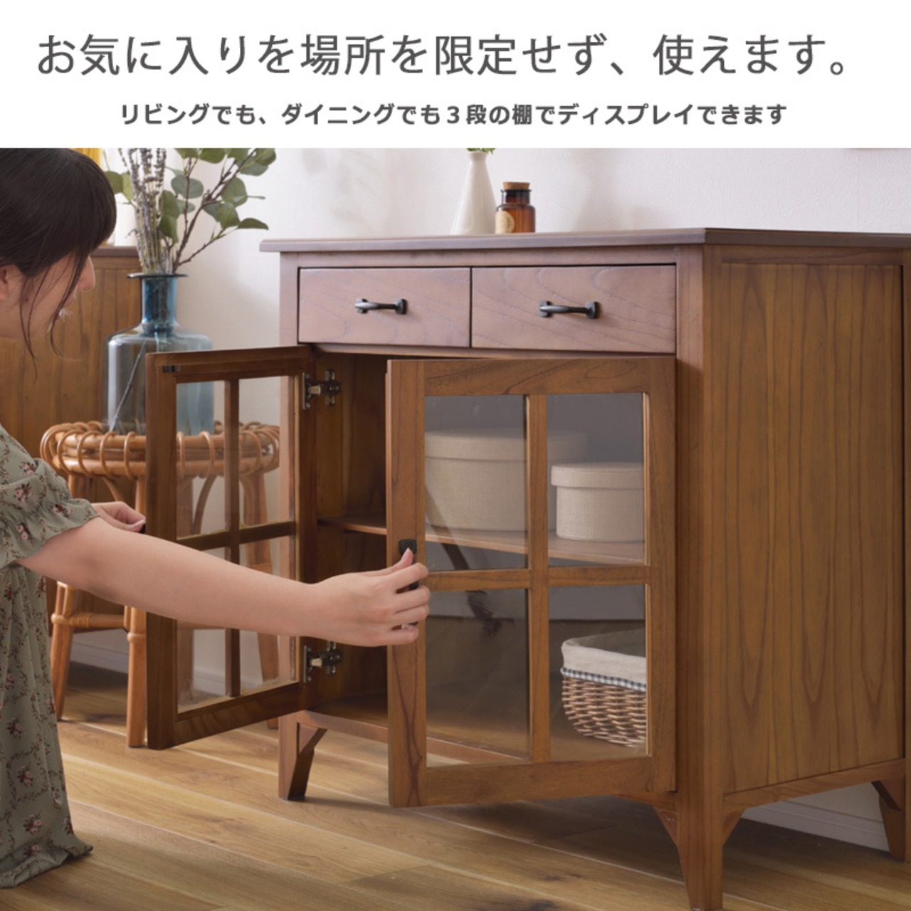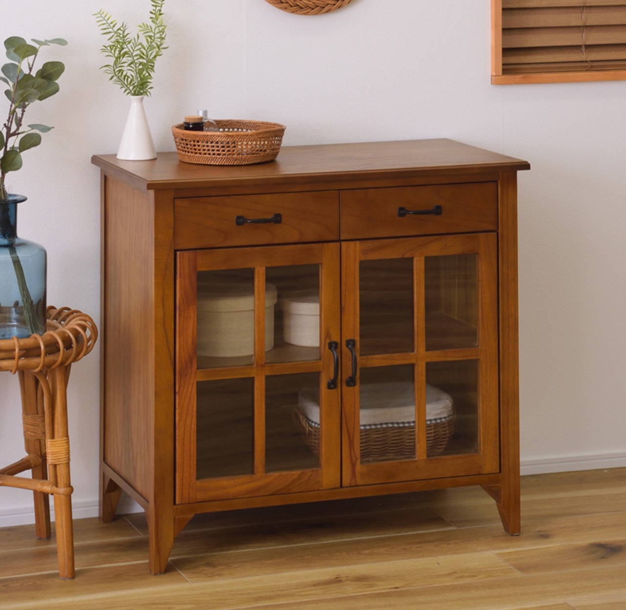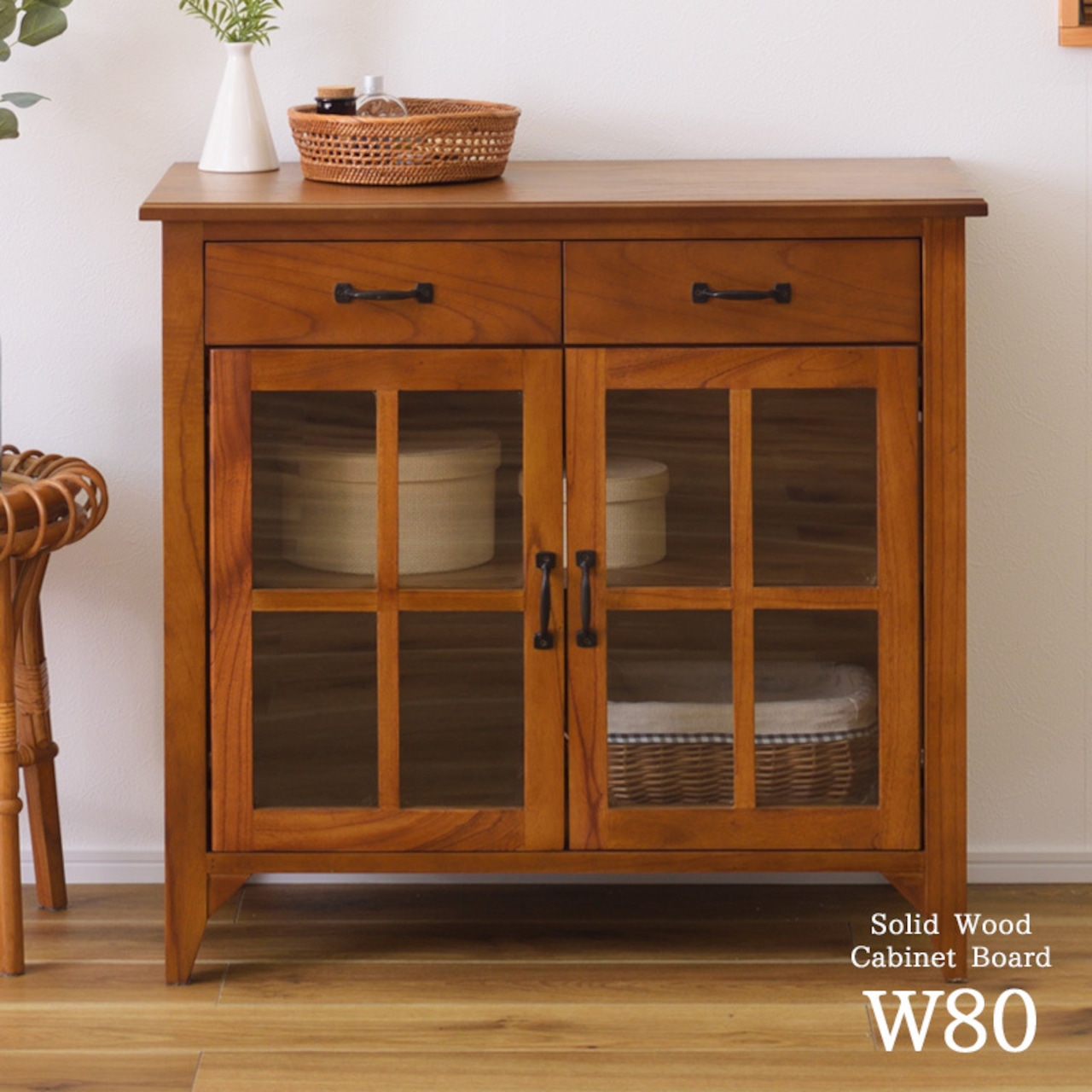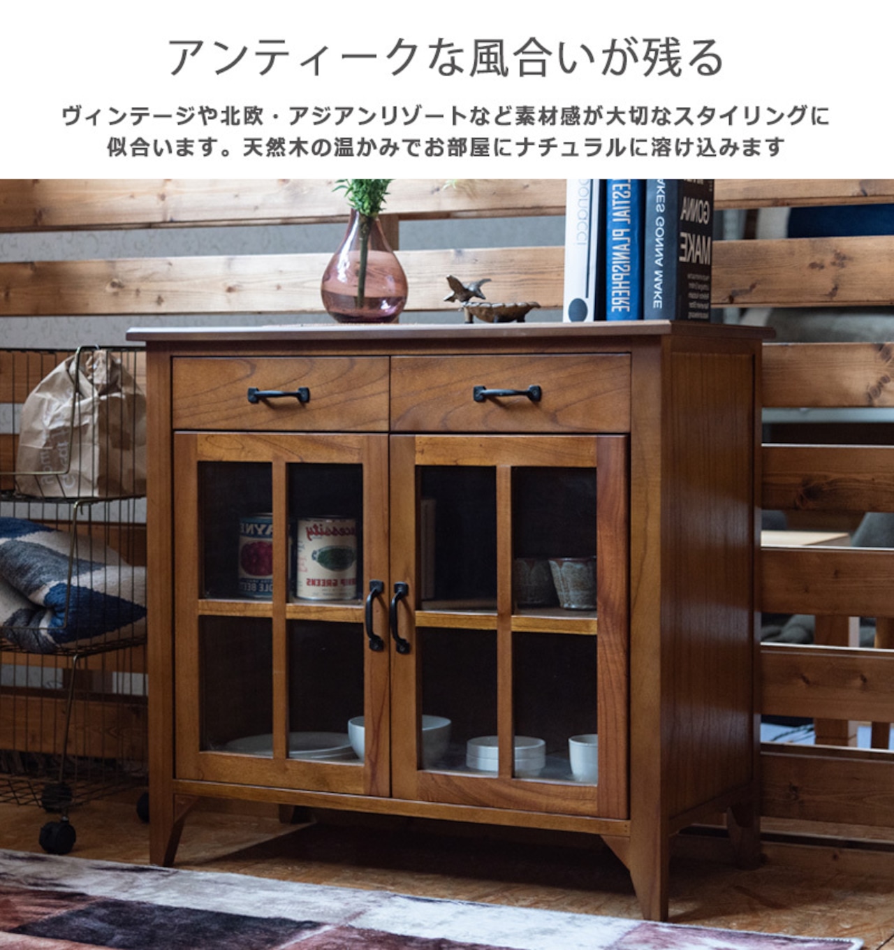 キャビネット ガラスキャビネット 幅80cm 木製 北欧 アンティーク 収納 ディスプレイ おしゃれ 北欧 ヴィンテージ アジアン 天然木