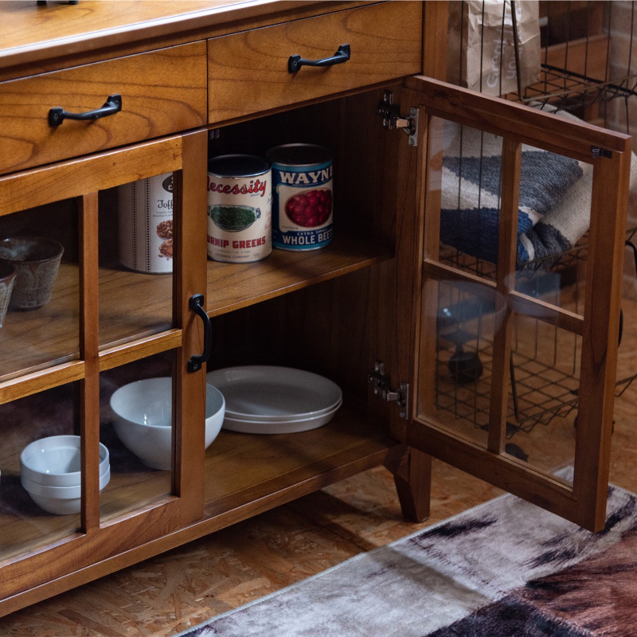 扉下段収納内寸:約幅74×奥行34×高さ23.5cm