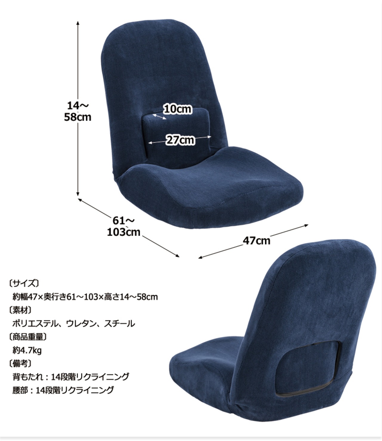 座椅子 フロアチェア パーソナルチェア リクライニング リクライニングチェア 布 ファブリック