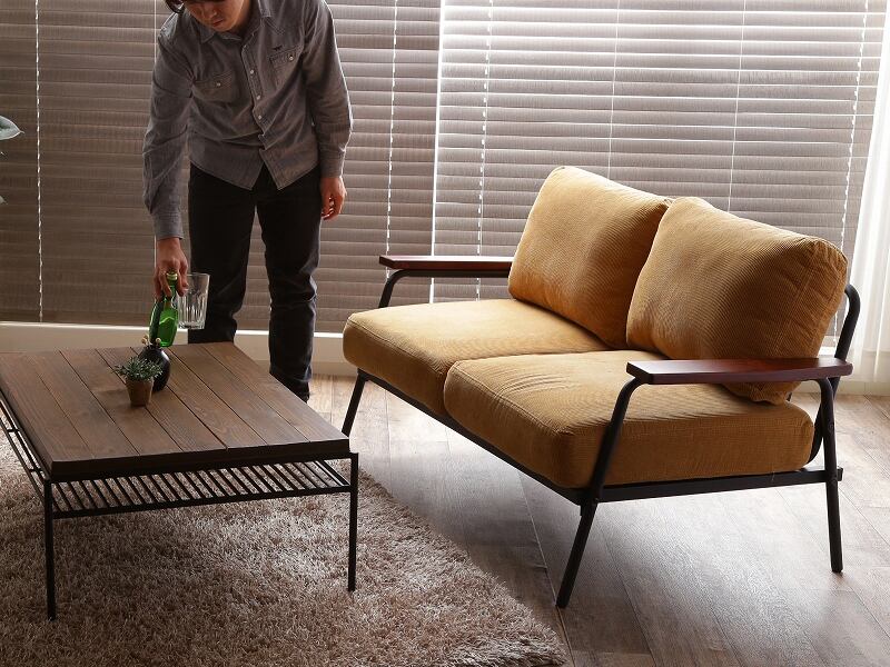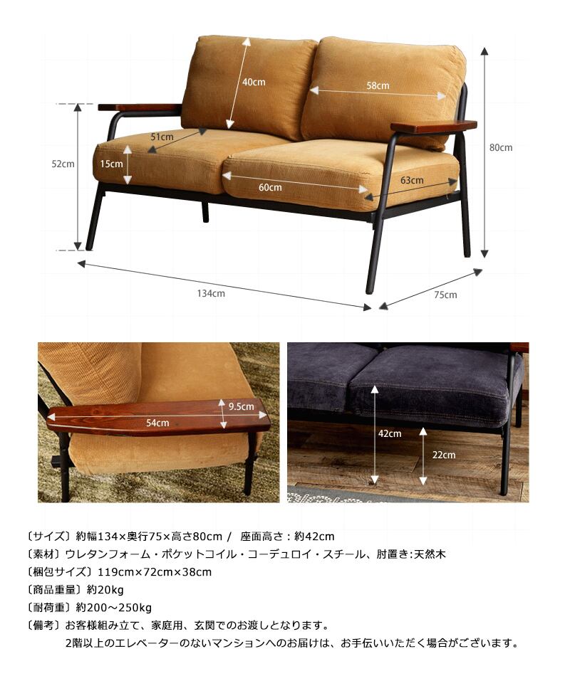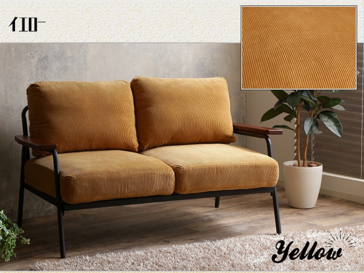 ソファ 2人掛け ポケットコイル コーデュロイ ヴィンテージ イエロー グリーン グリーン